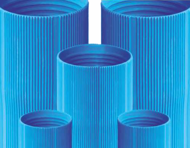 The exterior ribs contribute to increase the screen strength. The collapse resistance of ribbed screen pipes is significantly higher then regular screen pipes, the ribs increase the area of cross section of the pipes, thus providing higher axial load rating