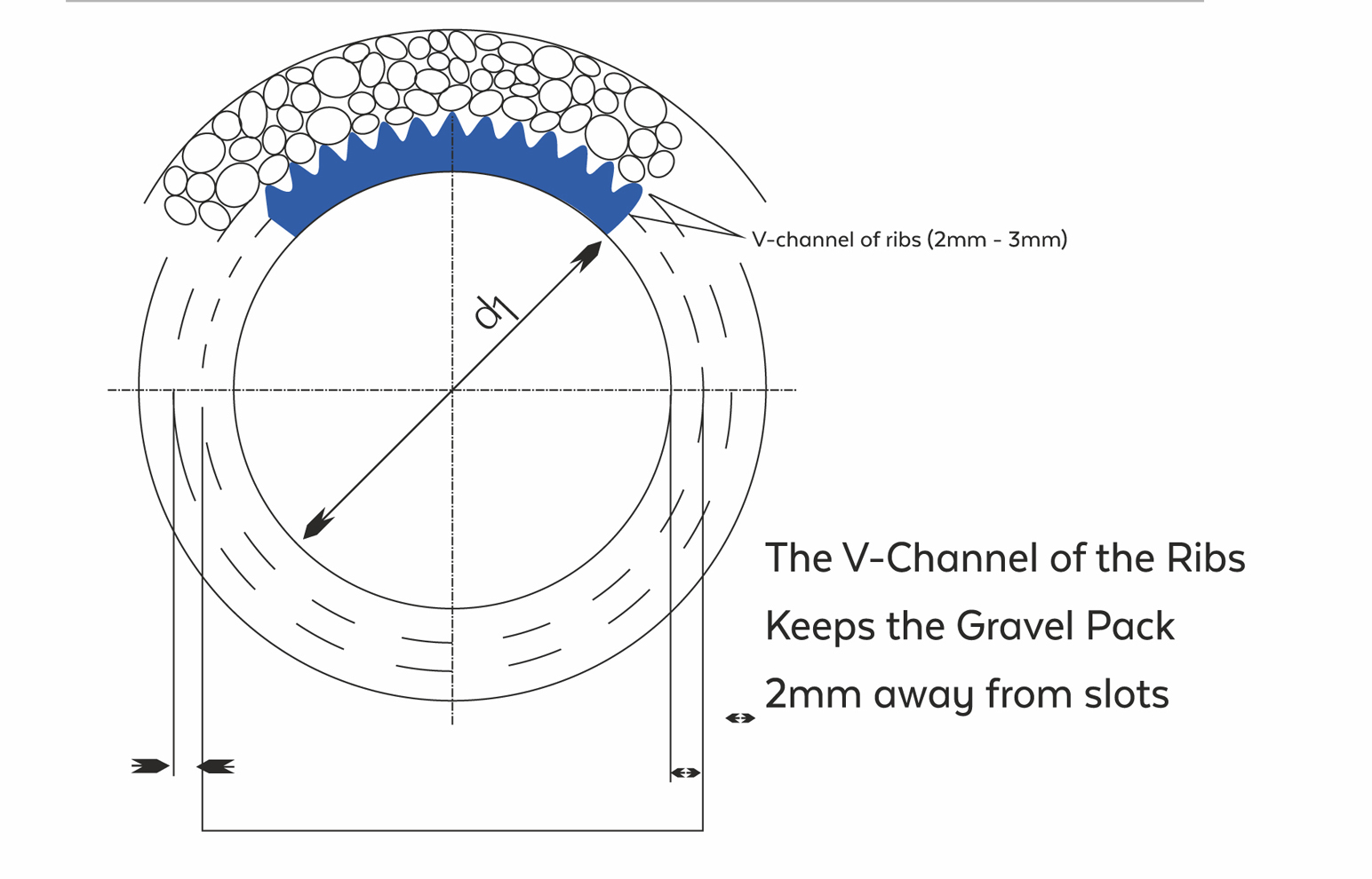 Granulated soils are kept away from the screen slots providing 2X Permeabilty (double) compared to the regular screen pipes